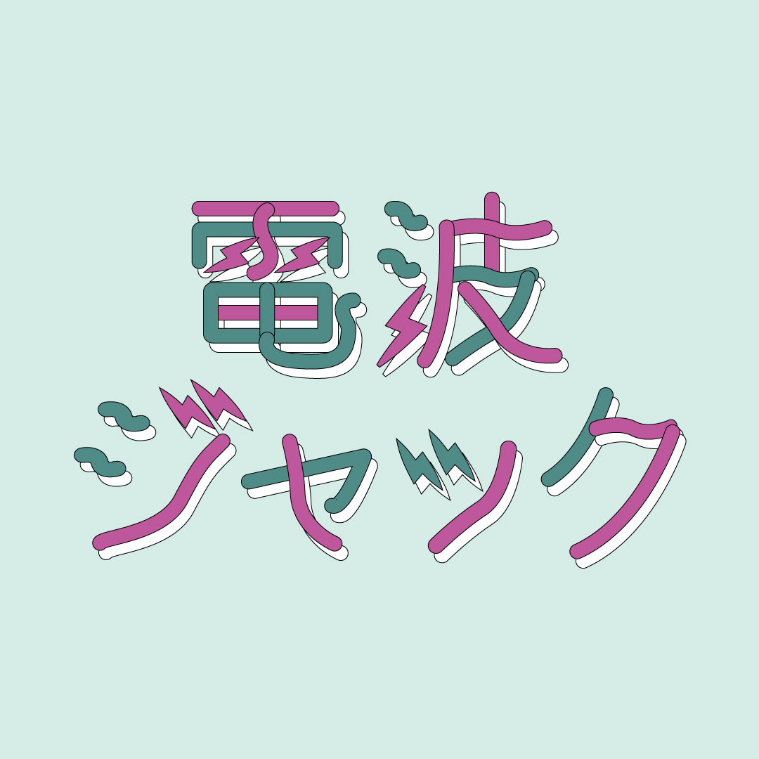 PVの世界を意識した“サイバーゆるカワイイ”配色にしました。「ジ」の濁点と「ッ」の点々を稲妻のエレメントに合わせることで統一感を図りました。