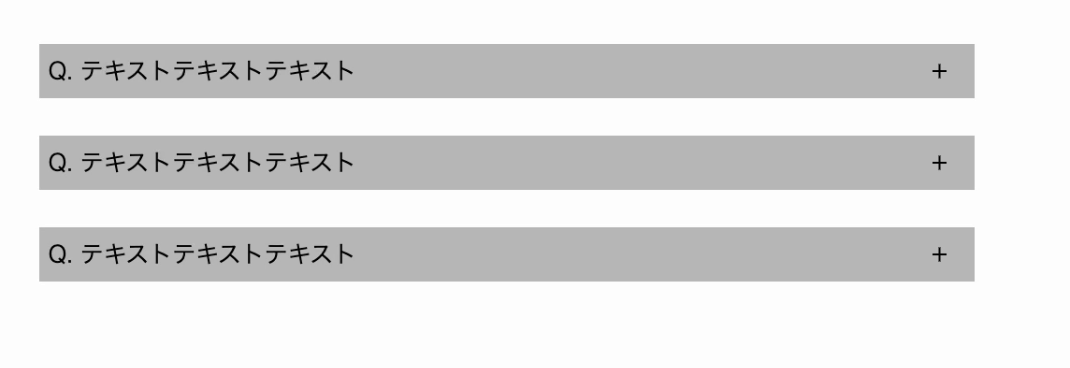 対処のDomにclickイベントをつけてslideToggleで要素の開閉をして、toggleClassでクラスの付けはずしをしてボタンのマイナスとプラスを切り替える。